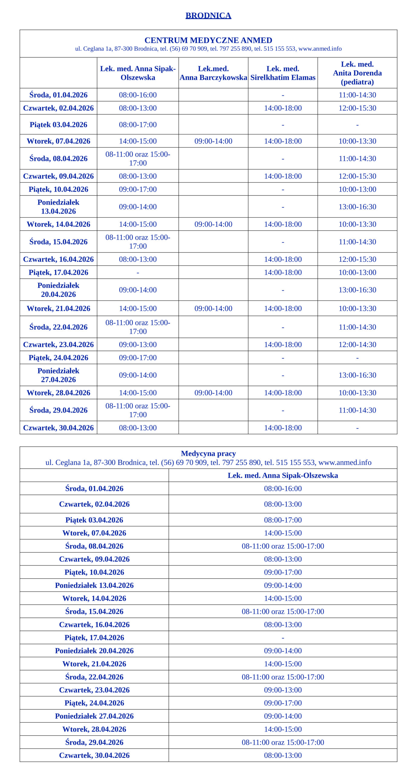 - Brodnica – (56) 69 70 909, 797 255 890, 515 155 553,