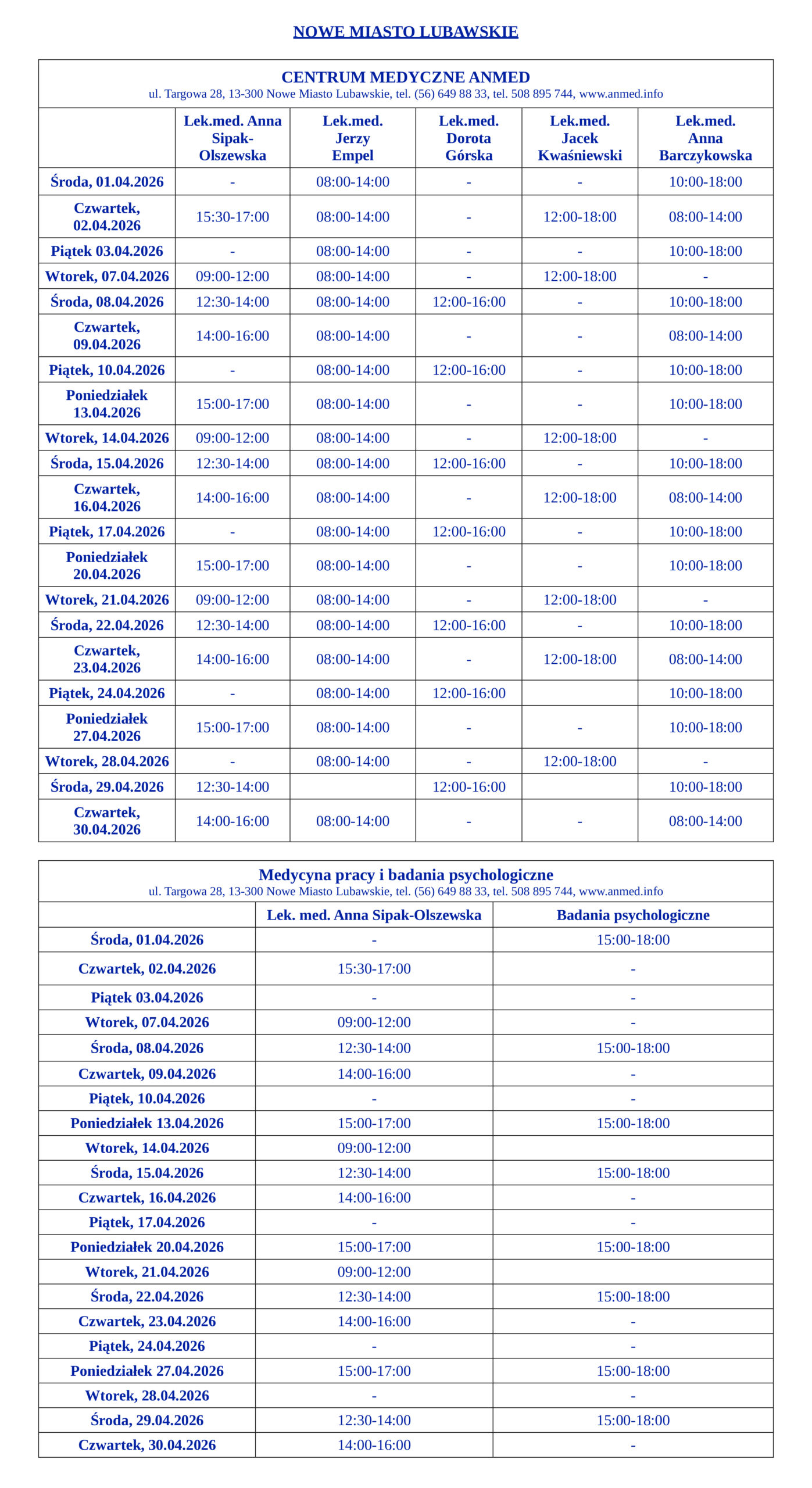 Informujemy, że poniższe godziny mogą ulec zmianie.